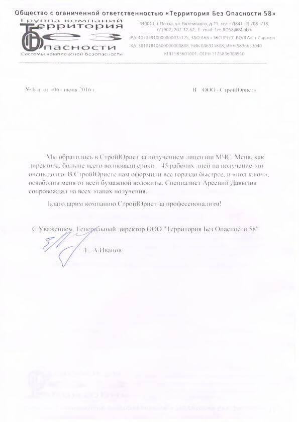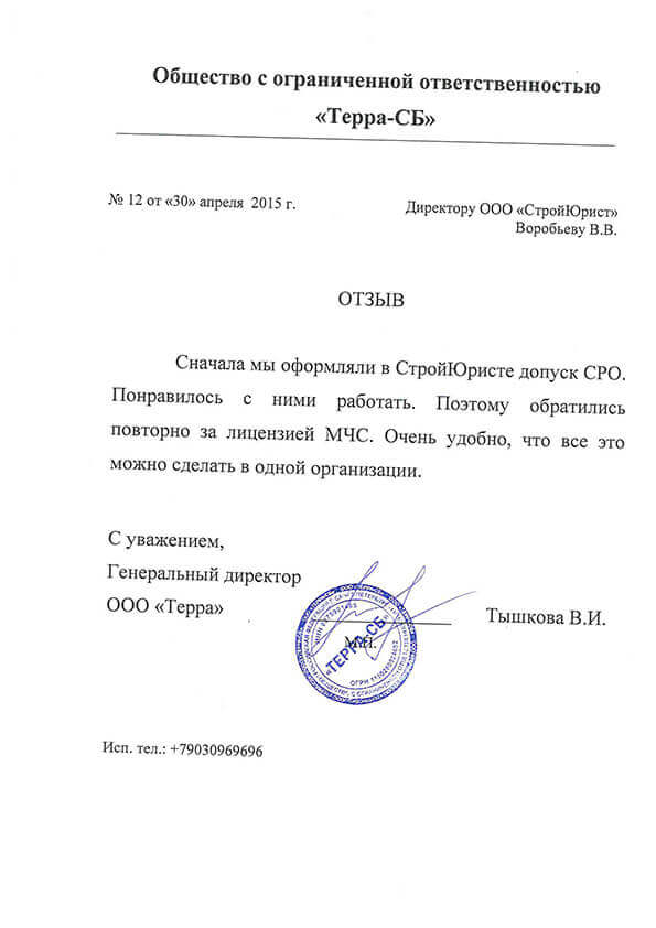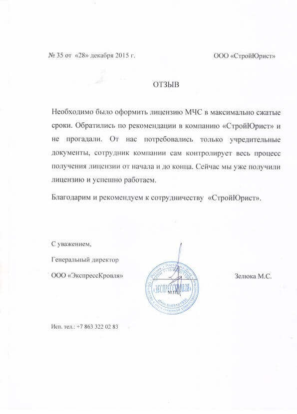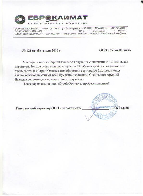 Отзывы клиентов "СтройЮрист" по лицензированию МЧС в Хабаровске