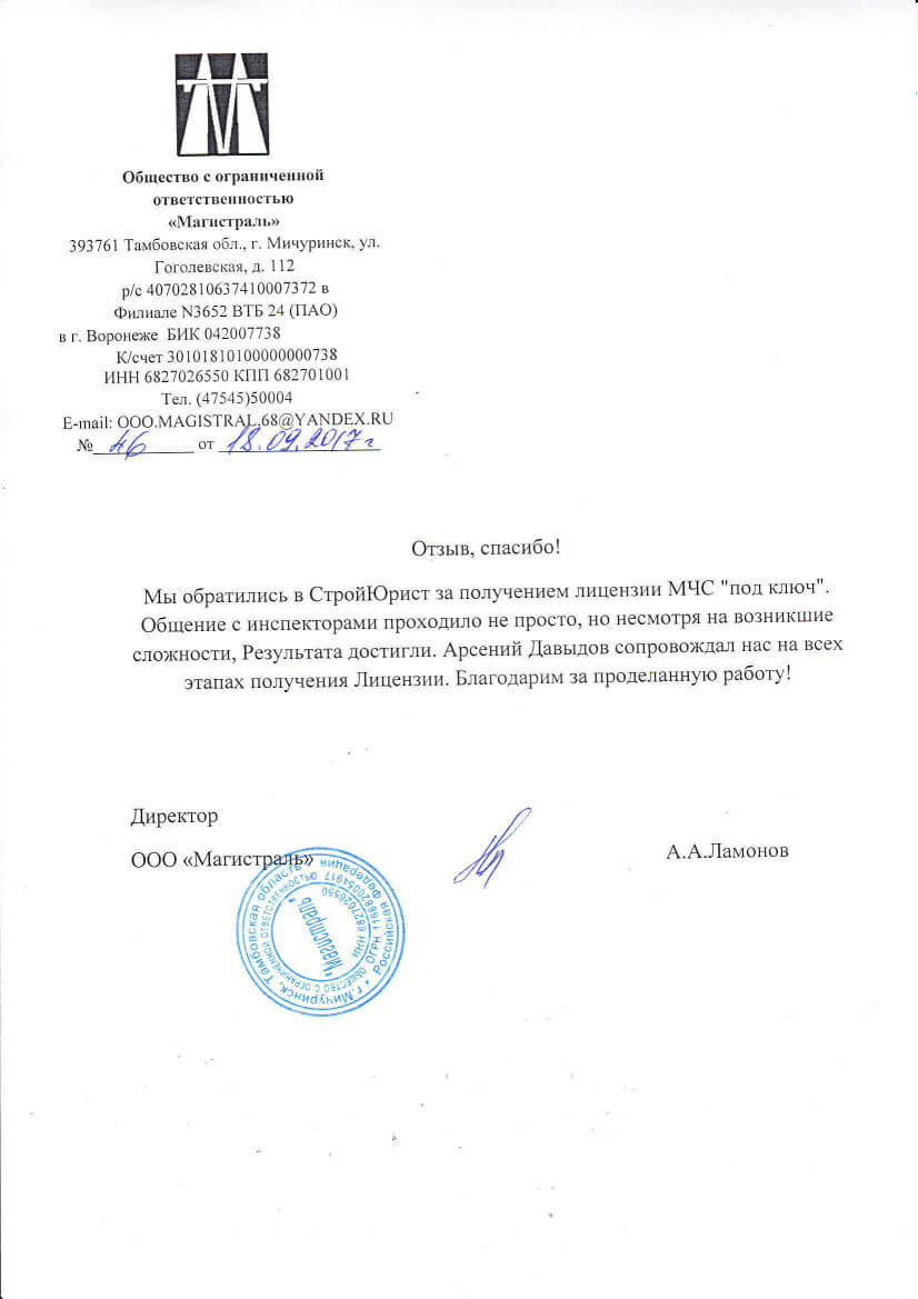 Отзывы клиентов "СтройЮрист" по лицензированию МЧС в Хабаровске